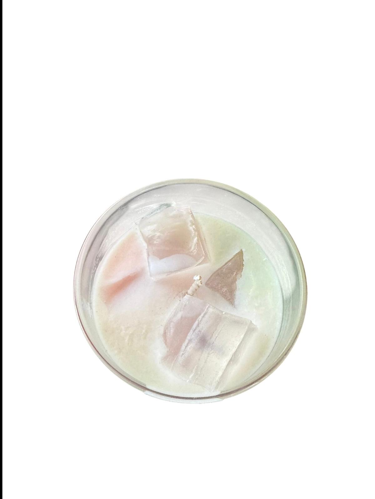 Designed to look just like a perfect iced strawberry matcha latte, the candle features layered tones reminiscent of creamy milk, vibrant matcha, and sweet strawberry, complete with realistic ice-cube detailing.